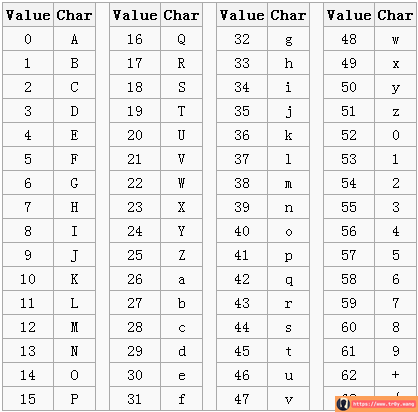 编码后的数据是一个字符串,包含的字符为: A-Za-z0-9+/